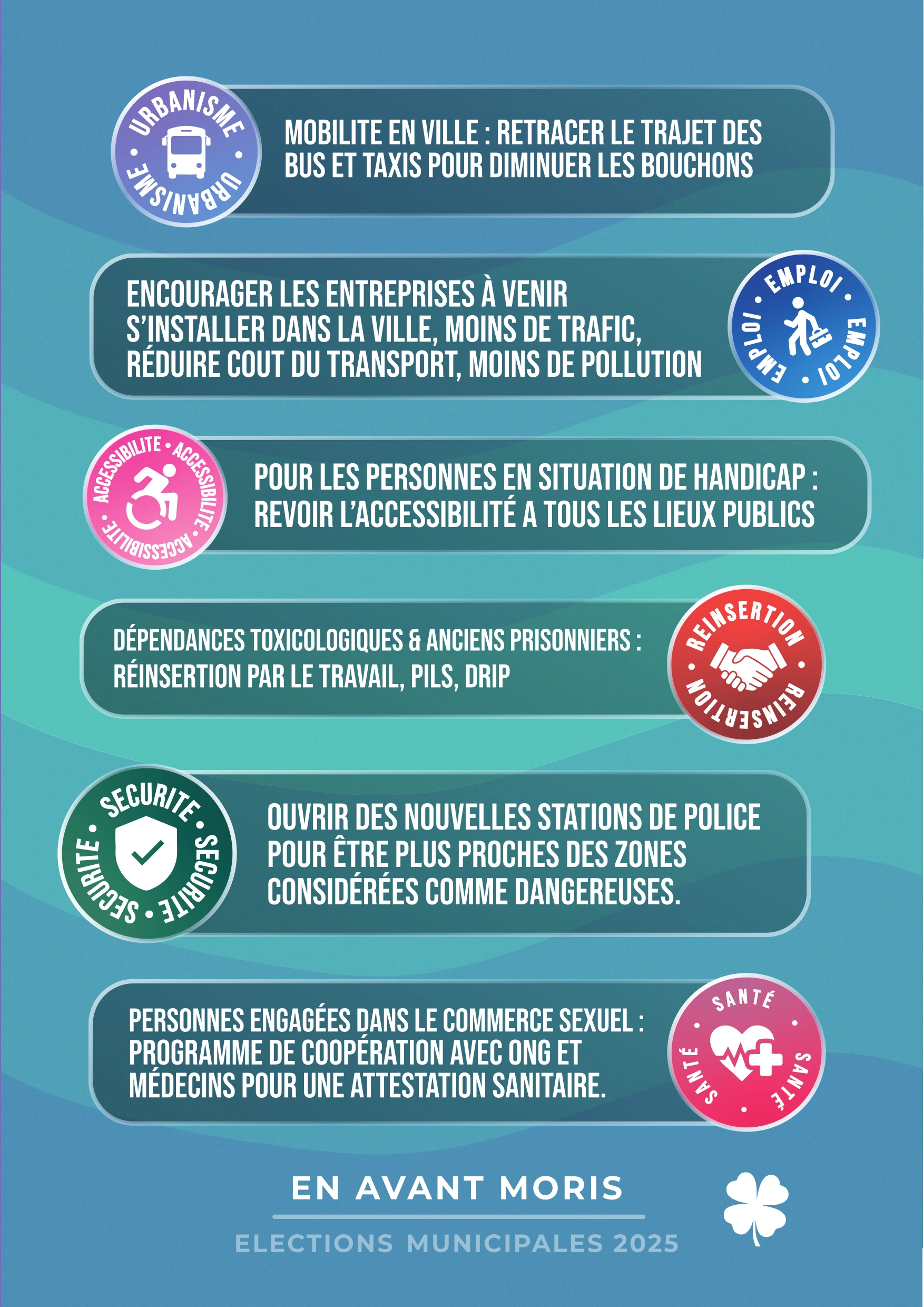 50 years old, founder and Leader of the En Avant Moris. An international finance professional, married and father of three children, he leads with vision and expertise.