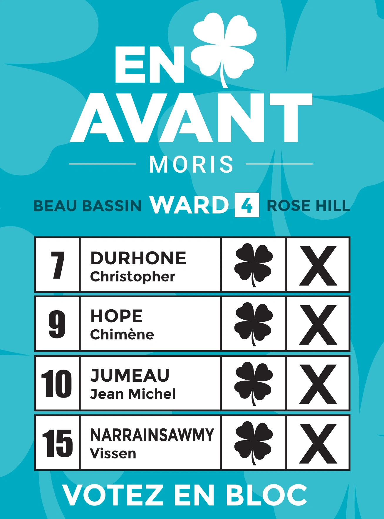 34 years old, accountant in the offshore industry, president of the Stanley Sports Youth Club. Married and father of one child, he has also served as an event organizer and treasurer within the Plaine Wilhems Regional Youth Council.